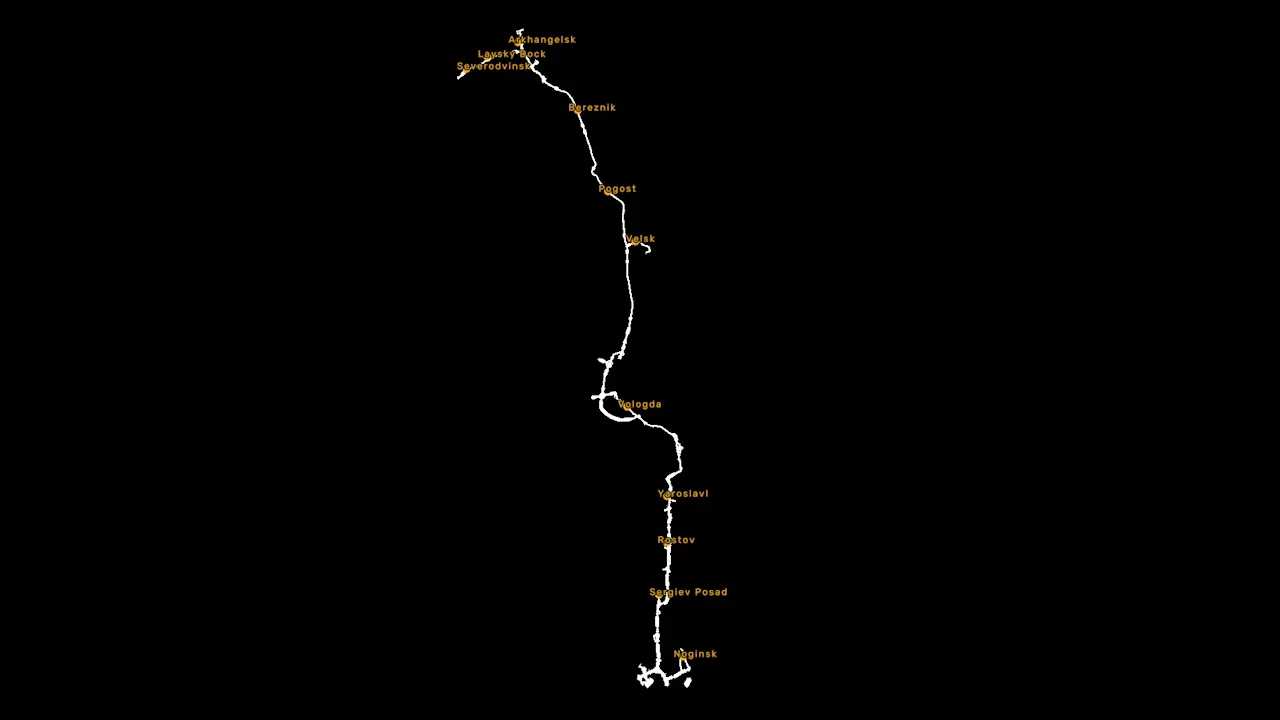 Includes cities: Severodvinsk, Laysky Dock, Arkhangelsk, Bereznik, Pogost, Velsk, Vologda, Yaroslavl, Rostov, and Sergiev Posad