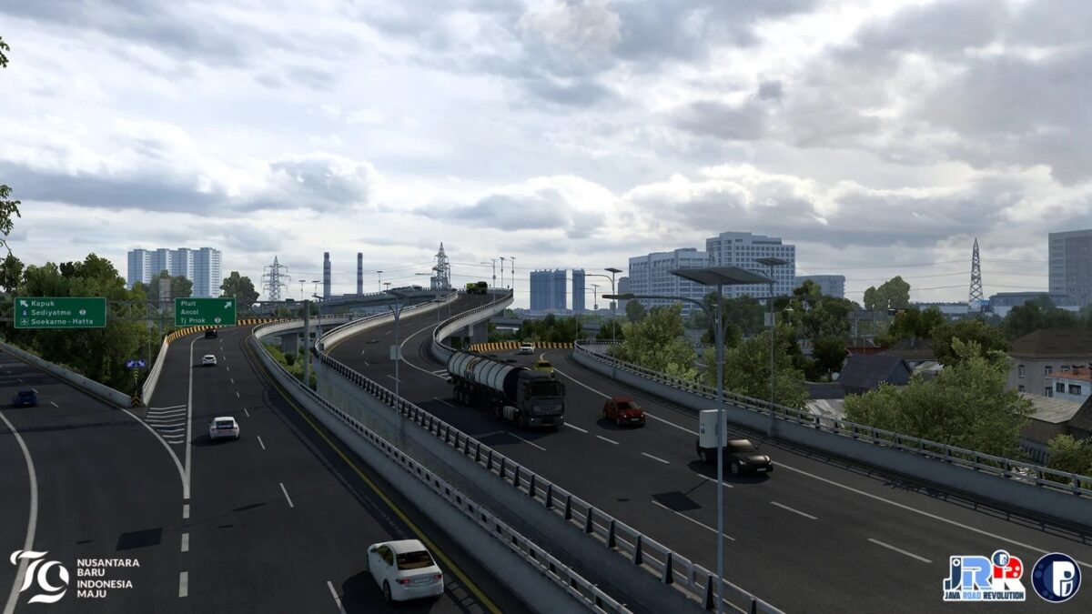 JRR (Java Road Revolution) is one of the most impressive and realistic Indonesia add-on maps for ETS2, bringing major sparks of revolution and great impacts for the Indonesian modding community. This map features the great metropolitan city of Jakarta and the diverse region of West Java and Banten, offering an immersive experience of the region’s varied landscapes and intricate roadways, from navigating through bustling cities and busy industrial hubs to winding through countryside spots, showcasing the urban diversity of Java. Each route is designed to reflect the authentic feel along the journey.