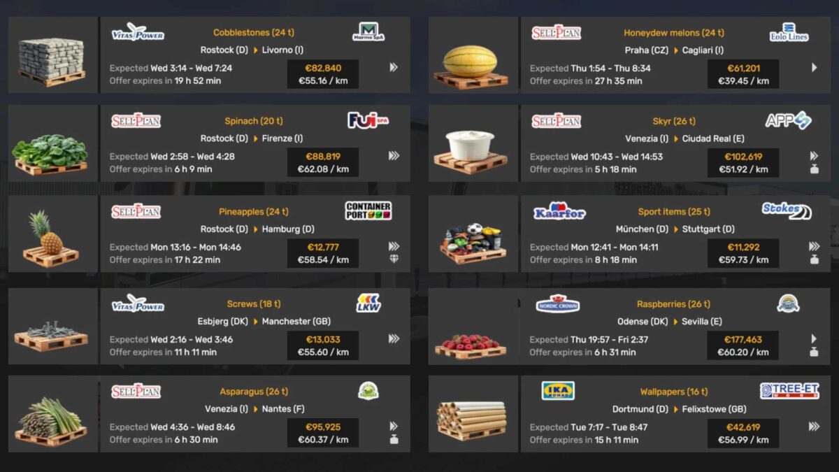 This modification introduces new, realistic, and distinctive freights for Euro Truck Simulator 2. Each freight is tailored to various company types found throughout the map.