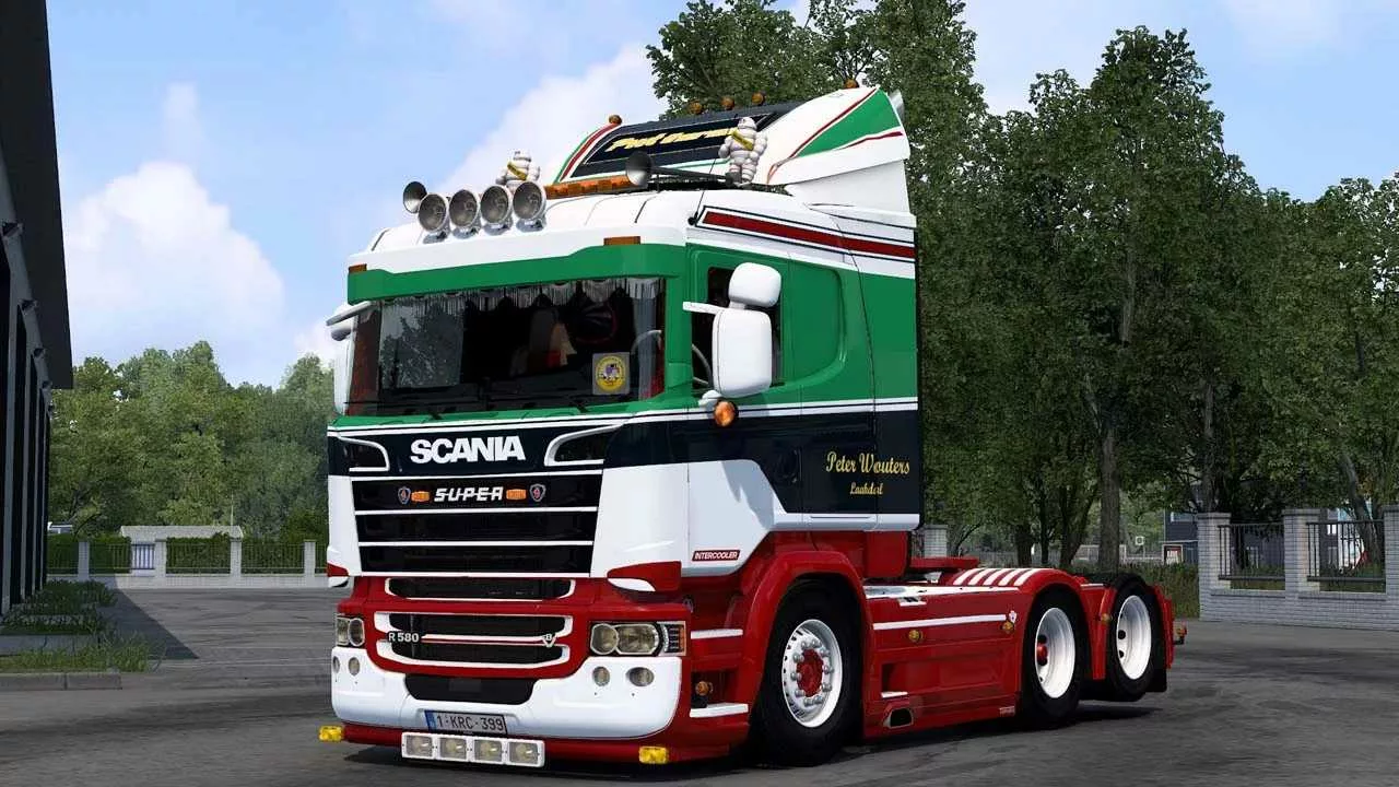 Credits: Model & conversion: JUseeTV, SCS (Seats, 5th wheel), RJL/LoaderSaints (steering wheel, exhaust, spoiler brackets, Euro 3 catalyst, engine, and Scania badges). Navigation scripts: DaStrobel. Skins: JUseeTV, Erzi_1982. Research, reference & technical assistance: JUseeTV, Dotec, Glubbschi477, Colin, etrusian.