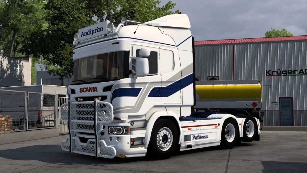 Credits: Model & conversion: JUseeTV, SCS (Seats, 5th wheel), RJL/LoaderSaints (steering wheel, exhaust, spoiler brackets, Euro 3 catalyst, engine and Scania badges) Scripts for navigation: DaStrobel Skins: JUseeTV, Erzi_1982 Research, reference & technical assist: JUseeTV, Dotec, Glubbschi477, Colin, etrusian